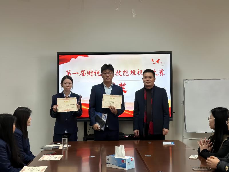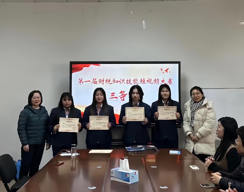 经过两周的激烈角逐,12月28日在综合楼401举行颁奖仪式,系领导、相关负责老师及获奖选手参加。最终,《财税知识短视频》和《中国十八税》两部作品凭借其生动有趣的内容摘得桂冠。此外,还有多部优秀作品获得了亚军和季军等多项殊荣。