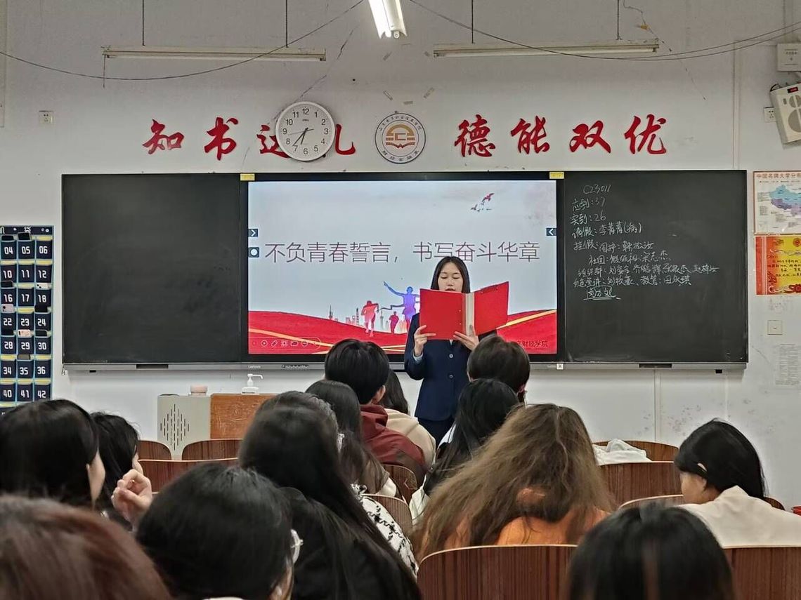 为继承和弘扬“五四”精神,激发广大青年的爱国热情,五四青年节来临之际,财经金融系开展“不负青春誓言,书写奋斗华章”进班宣讲活动。