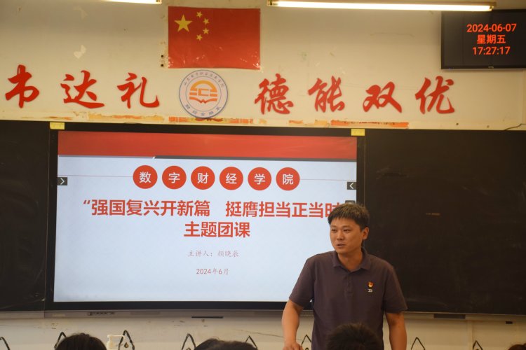 为深入学习宣传贯彻党的二十大精神,进一步加强团员干部队伍建设,激发广大团员青年的学习工作热情,培养新生力量,2024年6月7日,财经金融系团总支开展了以“强国复兴开新篇 挺膺担当正当时”为主题的团课教育,由财经金融系团总支书记颜晓辰老师主讲。