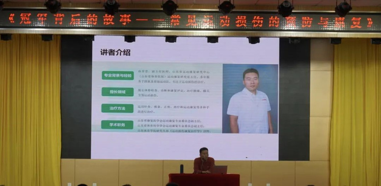 为增强师生的健康运动意识,推广科学健康理念,财经金融系于2024年11月12日在学术报告厅举办了一场“科学健身与运动损伤防治”为主题的讲座。此次讲座特别邀请了山东省体育医院康复医学科主任孙常青担任主讲嘉宾,财经金融系的辅导员代表和我校学生代表共同参与。