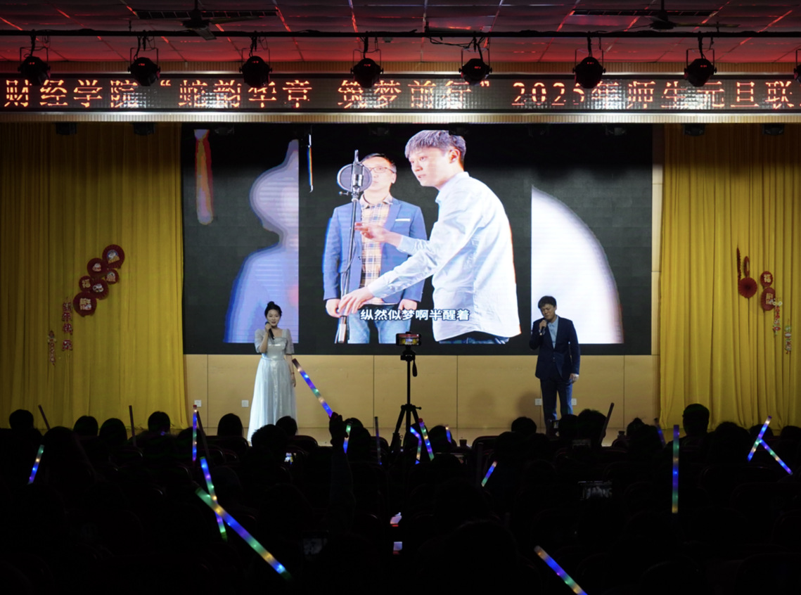 财经金融系的教职工们登上舞台,用天籁之音的歌声、情感真挚的朗诵,表达着对大家庭的关心与热爱;全体教职工的合唱,将团结友爱的氛围传递给每一位学生。他们的表演不仅展现了教职工的才艺风采,更彰显了系部浓浓的情谊,为元旦增添了温馨而美好的色彩,赢得了台下阵阵热烈的掌声和喝彩。