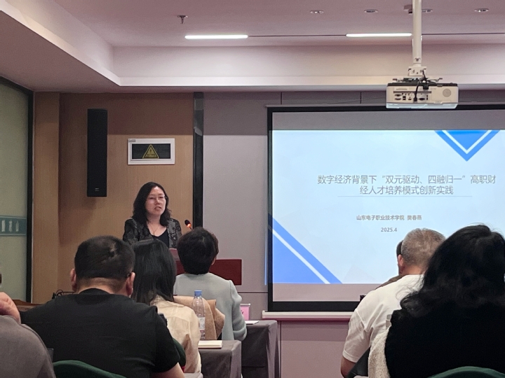 近日,山东省职工与职业教育重点课题负责人研修班在济南举行。我校财经金融系教师代表樊春燕受邀作专题交流,结合典型案例围绕课题研究全流程,从选题策划、方案设计到成果凝练等环节进行系统讲解,为参会人员提供了可借鉴的研究路径与方法。
