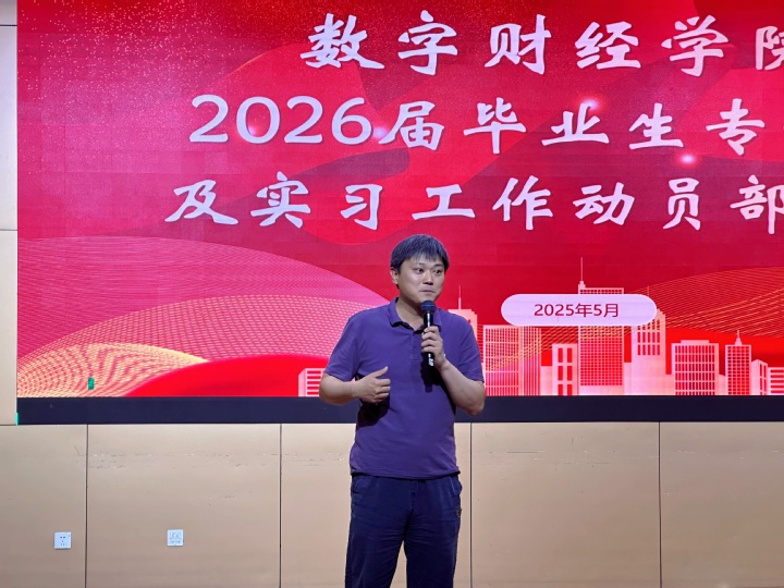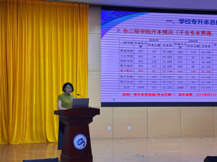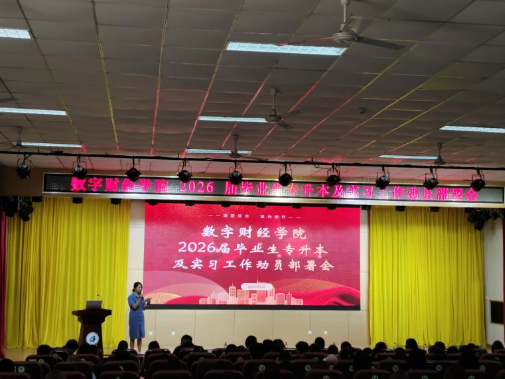 为切实做好2026届毕业生专升本与实习工作,为同学们提供精准指导,5月29日下午,财经金融系在学术报告厅召开2026届毕业生专升本及实习工作动员部署会。基础教学部任文娟主任受邀出席并做了题为《专升本数据分析与政策解读》的主题报告,财经金融系全体干部、实习指导教师、辅导员以及2026届全体毕业生参加会议,会议由财经金融系党总支副书记王燕主持。