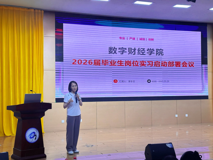 近日,财经金融系在报告大厅隆重举行了2026届毕业生岗位实习启动部署大会。学院全体干部、实习指导老师、辅导员及421名2023级学生齐聚一堂,共同参加了此次大会。会议由财经金融系党总支副书记王燕主持。