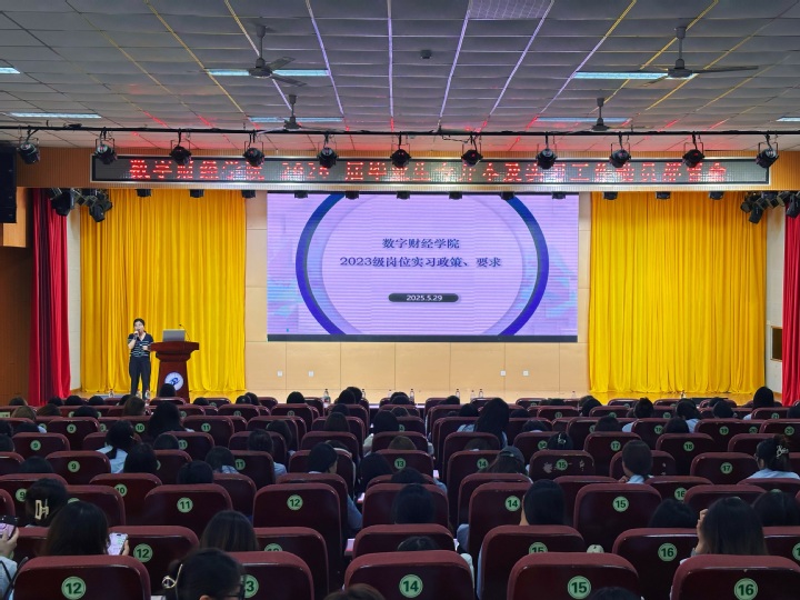 近日,财经金融系在报告大厅隆重举行了2026届毕业生岗位实习启动部署大会。系全体干部、实习指导老师、辅导员及421名2023级学生齐聚一堂,共同参加了此次大会。会议由财经金融系党总支副书记王燕主持。