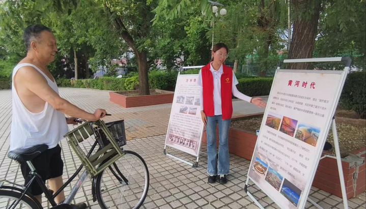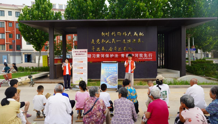 在此基础上,实践团分赴两地开展专题宣讲。在杨庙社区,以“黄河是中华民族的根与魂”为切入点,通过展板呈现黄河流域历史脉络,解读“母亲河”孕育的文化瑰宝;同步结合《中华人民共和国黄河保护法》相关条款,用通俗语言解析法律要义,引导村民将文化认同转化为保护自觉。在桑园村,宣讲立足“黄河文化与地方文脉共生”视角,依托古河道遗址与村史馆,讲述黄河流域农耕文明对当地的滋养;针对《中华人民共和国黄河保护法》,重点解读与农业生产相关的条款,推动法治理念与文化自觉同频共振,凝聚“守护母亲河、传承家乡文脉”的共识。