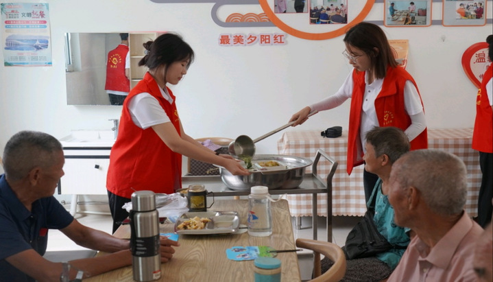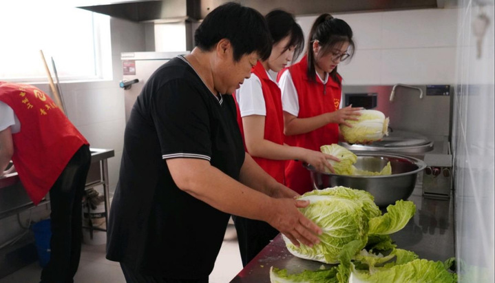 实践团于杨庙社区幸福食堂开展志愿服务。成员们分工协作,高效完成蔬菜清洗、食材切配等餐食准备工作,保障食堂有序运转;餐时主动承担分发任务,重点为行动不便的老人提供送餐服务,期间与老人们亲切交流,关切询问身体状况与生活需求,让食堂充盈温情关怀,将服务切实送到老人身边。