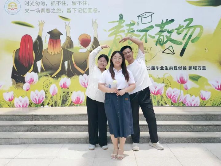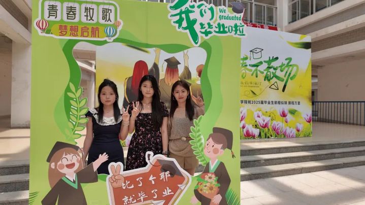 签到处旁的照片打卡区热闹非凡,毕业生们与师长相拥告别,与同窗合影留念,将母校的一草一木、一朝一夕都定格在记忆深处,是对时光的礼赞,将独属于我们的岁月镌刻成心中难忘的印记。