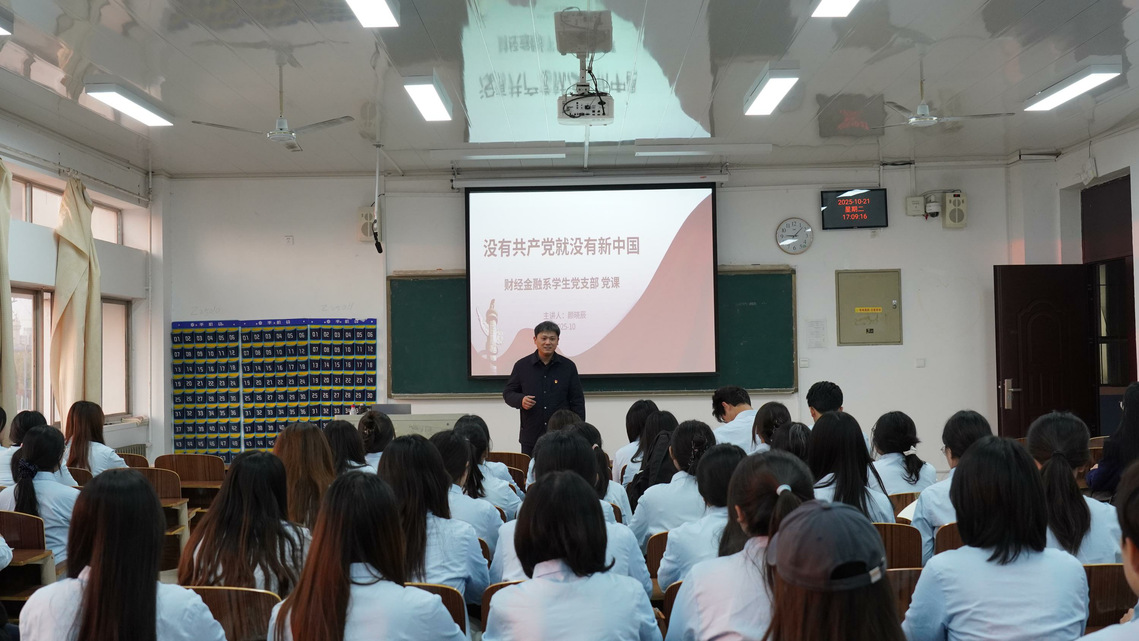 为深入学习贯彻习近平新时代中国特色社会主义思想,进一步端正入党动机、坚定理想信念,2025年10月21日,财经金融系学生党支部在3109教室开展以“没有共产党就没有新中国”为主题的入党积极分子党课培训。本次党课由财经金融系学生党支部书记颜晓辰主讲。