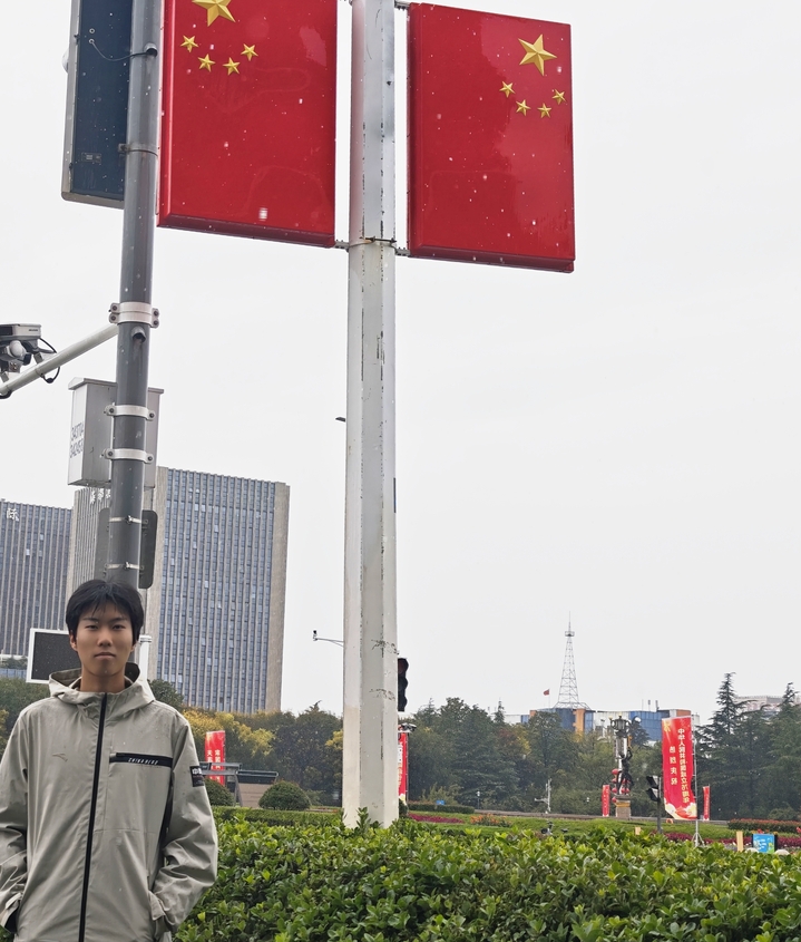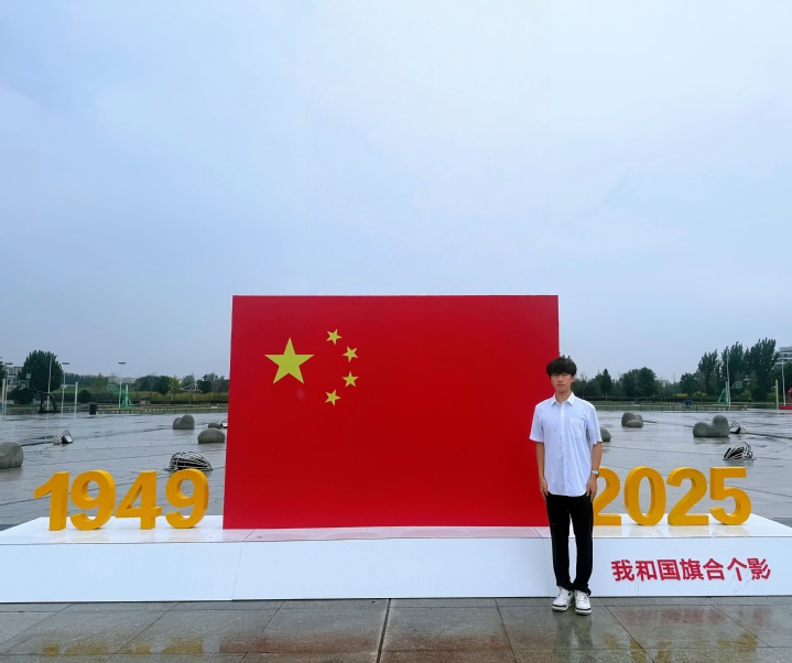 我是C25001班的朱建宇,我在青岛西海岸新区的隐珠广场与国旗合影。站在历史的交汇点,感受祖国的变迁。1949年到2025年,每一年的努力奋斗都凝聚在这面国旗上。愿祖国繁荣昌盛,愿我们都能在时代的浪潮中,书写属于自己的精彩篇章!