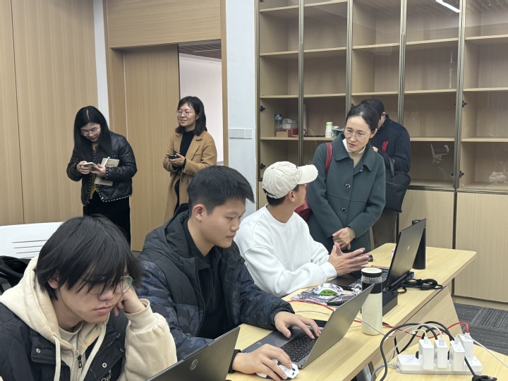 调研小组深入项目现场,围绕交付中心运营模式、校企协同路径、课程体系构建、实训环境搭以及工学交替培养等核心问题,与师生进行了深入交流。