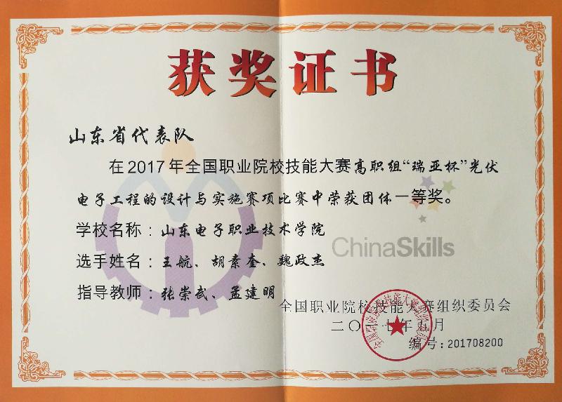 全国职业院校技能大赛高职组“瑞亚杯”光伏电子工程的设计与实施赛项一等奖
