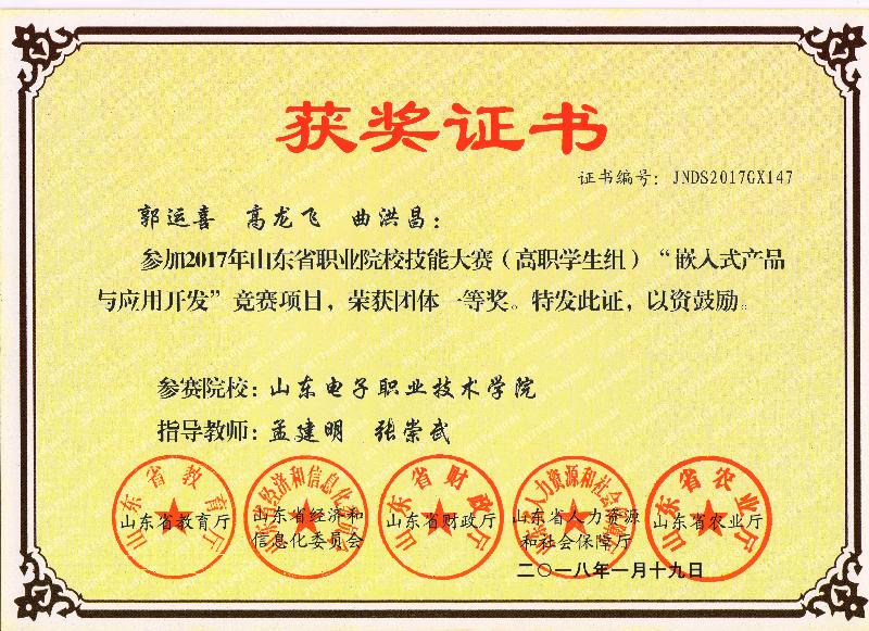 山东省职业院校技能大赛嵌入式产品与应用开发一等奖