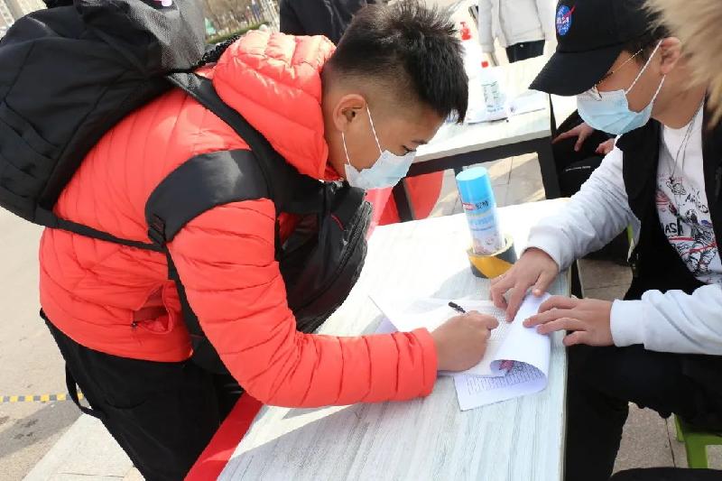 为保证开学工作顺利进行,我校学生错时错峰到校报名,疫情防控措施做到了有序、规范、高效。继20级同学的归校,3月4号志愿者们依旧站在自己的岗位上迎接19级同学的到来。