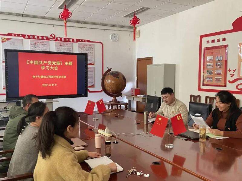 11月25日下午,电子与通信工程系学生党支部在综合楼216召开《中国共产党章程》主题学习会议,旨在强化党员党章意识、提高党性修养。电子与通信工程系学生党支部书记张颖静在主持会议时强调,认真学习党章、严格遵守党章,是加强党的建设的一项基础性经常性工作,也是全党同志为党工作、时刻牢记的应尽义务和责任,对强化全党党章意识,增强党的创造力、凝聚力、战斗力具有极为重要的作用。