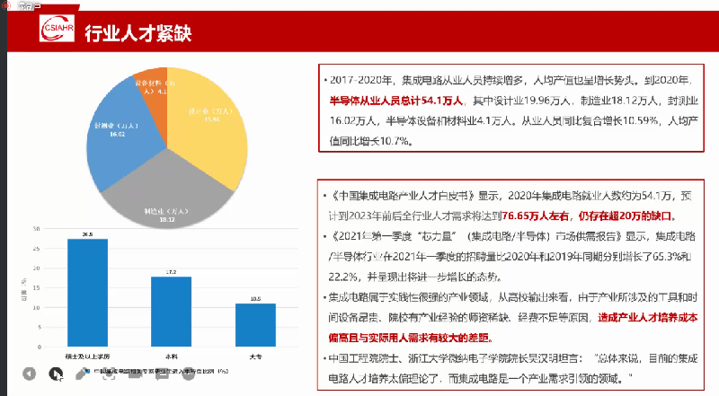 专家从集成电路产业背景、发展趋势、产业链、岗位待遇、人才需求、知识储备、职业发展规划等方面进行了深入、细致的解读和分析。