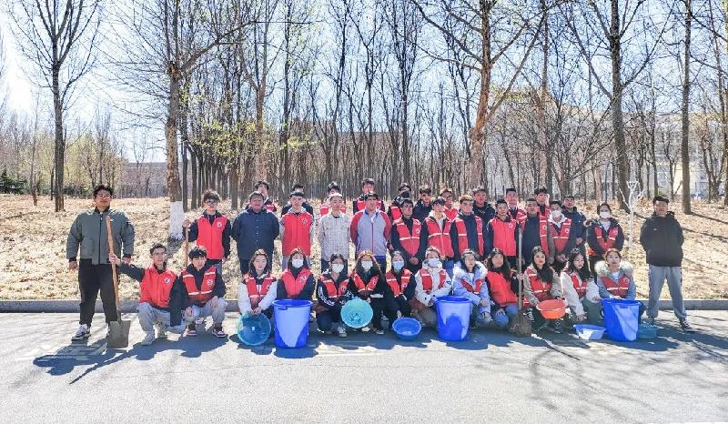 活动现场,全体人员根据活动安排,迎着春风,即使寒风肃肃,但一颗颗火热的心仍然使大家分工明确、干劲十足、如火如荼地进行着植树活动。挥锹铲土、扶苗填坑、踩实浇水,各个环节井然有序。经过一个多小时的辛勤劳动,辛劳的汗滴滑入了满载希望和爱心的土壤之中,小树苗们也在春日里迎风而立,向阳而生,在明媚的春光中焕发出勃勃生机。经过大家辛勤的劳动,多棵绿植在校园里“安家落户”,为校园增添一片新绿。