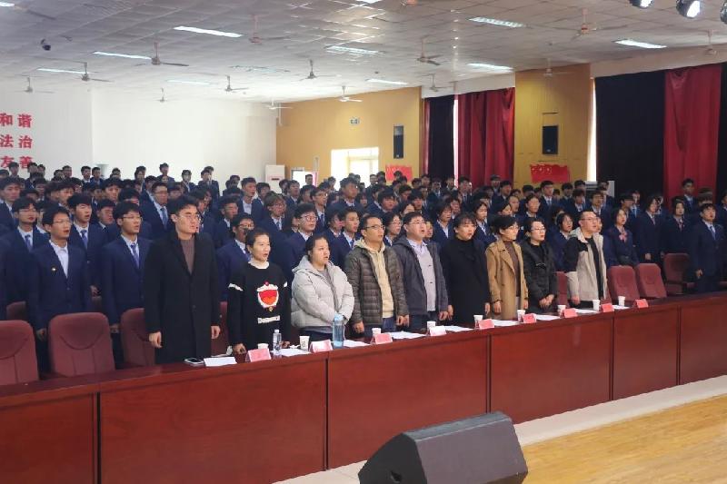 大会在庄严的国歌声中拉开序幕,全体师生起立,奏唱国歌。