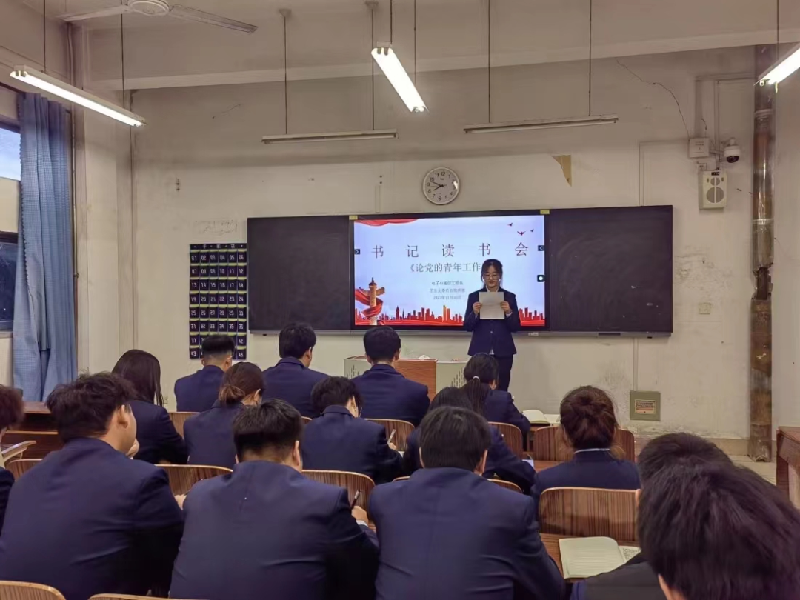 书记读书会开始,各团支部书记紧紧围绕《论党的青年工作》开展读书分享。通过品读学习原著,明白其要义,道出自己感悟的方式。各团支部书记集中学习了要全面贯彻党的教育方针,不断增强德智体美劳全面发展,坚定理想信念,担当起党和人民赋予的历史重任。在交流结束后,各团支部书记对党的青年工作有了更加深入的理解感悟,同学们纷纷表示:《论党的青年工作》是给予广大青年最珍贵礼物,为新时代我们这一代青年奋进新征程指明了前进方向,充分体现了习近平总书记和党中央对青年工作的高度重视,诠释了新时代青年责任重大,我们切实感受到青年应当夯实信仰之基,卓越奋发、砥砺前行。读书会现场,同学们认真聆听每一位同学的读书分享,并记录学习体会,营造出以读促思、以思促行的浓厚学习氛围。