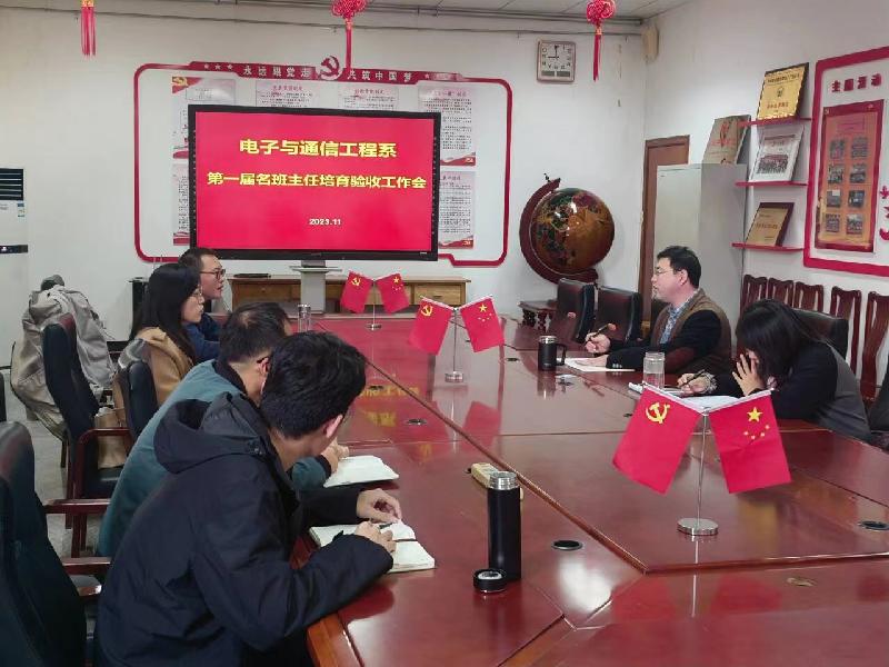 11月21日,电子与通信工程系召开第一届名班主任培育验收工作会,党总支副书记徐磊主持,全体辅导员参加。根据我系第一届名班主任培养方案的相关要求,结合全员之前提交的材料,现场审核材料,圆满完成验收。经过一年培养周期,每位辅导员在政治思想与职业能力、专业知识与科研水平、班级与学生事务管理等方面有较大提高,形成鲜明独特的学生教育管理模式,逐步建成一支素质优良、结构合理、规模适当、具有良好职业道德和优秀业务能力的辅导员队伍。