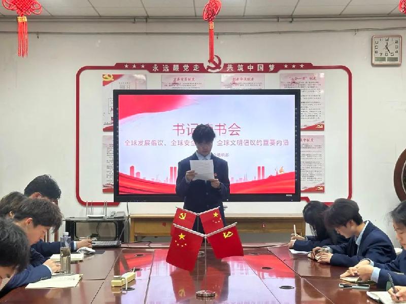 为深入学习领悟习近平外交思想的深刻内涵、精髓要义以及时代意义,深刻把握构建人类命运共同体理念。1月11日,电子与通信工程系开展“全球发展倡议、全球安全倡议、全球文明倡议的重要内涵”主题书记读书会,23级全体团支书参加。