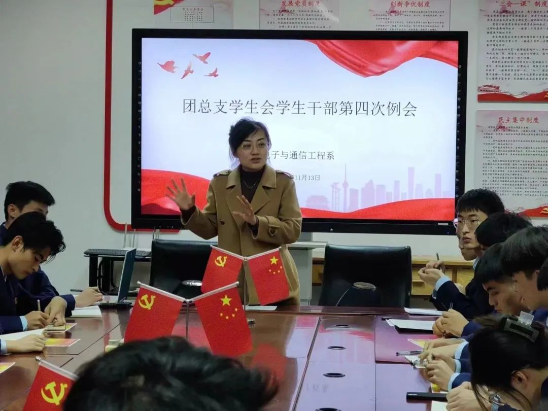 为进一步提升学生干部队伍之间的沟通与联系,增强协作意识和团队凝聚力。我系于11月13日召开团总支学生干部第四次例会,王宁老师主持,全体学生干部参加。