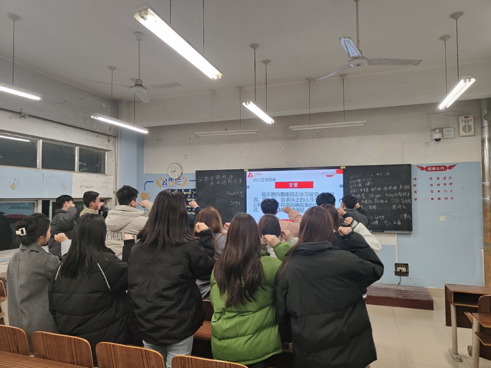 活动开始,首先由各团支部召开雷锋故事会,同学们通过分享雷锋事迹、讨论雷锋精神内涵,让大家对雷锋精神有了更加深入的认识。同时,我系雷锋电子e工服务队队员和春考志愿者们结合近期志愿情况,分享了在日常生活中践行雷锋精神的心得体会,同学们深刻认识到了新时代雷锋精神的积极作用,立志要继续发扬雷锋精神,弘扬社会正能量,让青春在奉献中绽放价值。活动最后,同学们举起右拳宣誓,志愿向雷锋同志学习爱党、爱祖国、爱人民,追求向上的人生姿态,心怀理想,志存高远响应新时代的号召,让雷锋精神赓续绵延。