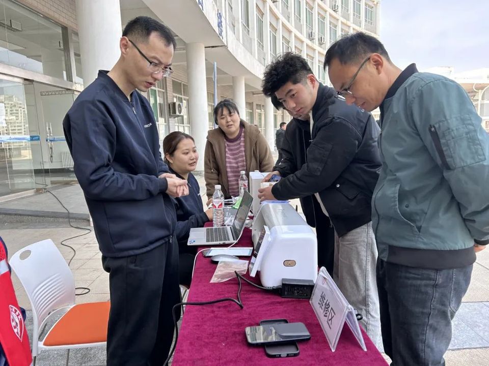 随着智能移动端的快速发展,手机已经成了生活的一部分,通过贴手机膜不仅可以起到旧机翻新的作用,同时能更好的防水防尘防划痕。活动现场,张颖静与陈旭来到现场指导,师生们兴致勃勃地前往,挑选着自己心仪的手机“新衣”,志愿者组织老师与同学们排队、登记手机型号。荣耀公司的专业技术人员提供技术支持,用机器剪裁出合适的手机膜,工作人员取下旧膜、喷洒清洁剂、擦干手机屏幕、对准边缘线、赶走小气泡……一两分钟就贴好了一张张精美的手机后膜与完美的手机前膜。与此同时,荣耀技术人员还与师生们讲解着日常保养手机的注意事项,既专业又温馨。