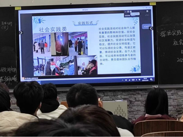 22、23级社会实践学生代表通过线上方式向同学们分享了社会实践的经验,他们用生动的语言和真实的案例,分别从参加社会实践基本情况、实践内容、实践收获、实践心得、存在的不足及改进建议等多个方面向同学们展示了社会实践的魅力和意义。这些优秀代表们的分享,不仅激发了同学们参与社会实践的热情,也为他们提供了宝贵的经验和启示。