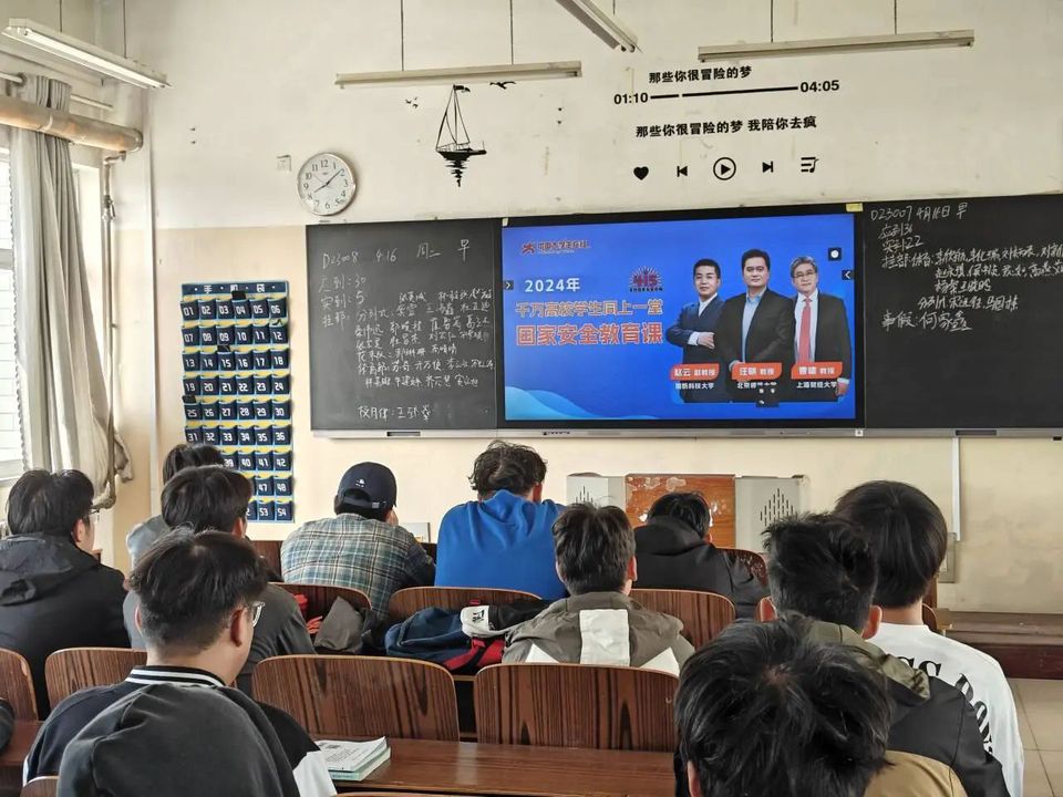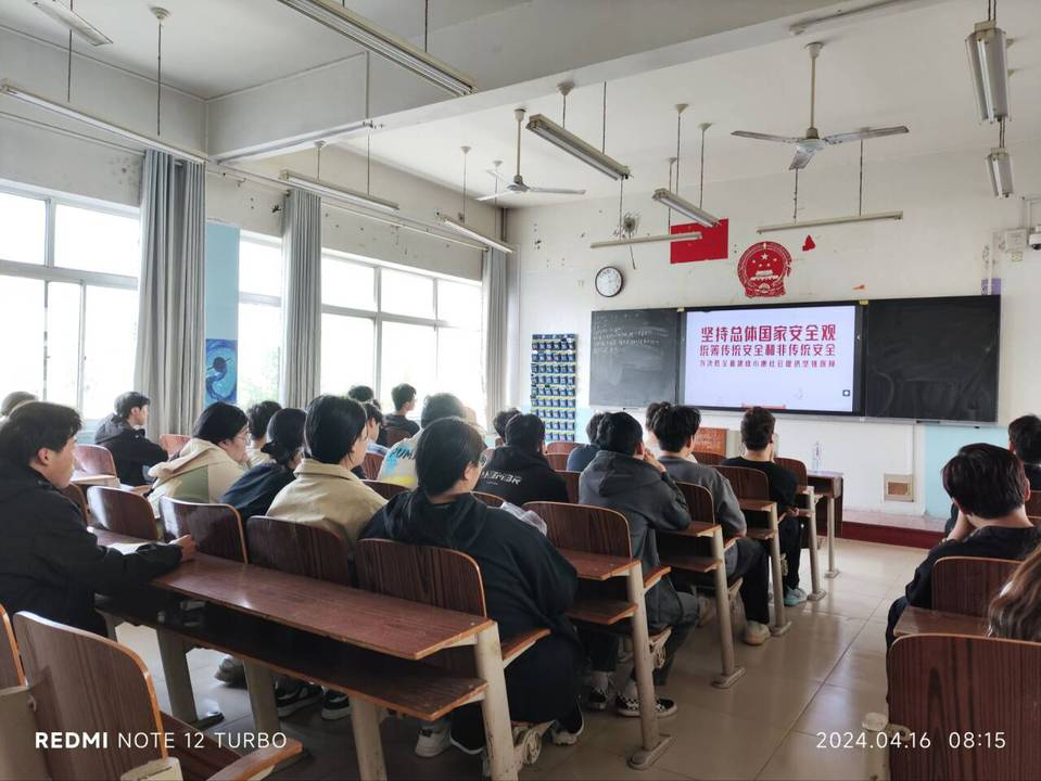 为迎接第九个全民国家安全教育日,营造维护国家安全人人有责,人人可为的浓厚氛围,我系积极开展关于国家安全教育主题活动,组织学生于4月16日在各班学习观看“千万学生同上一堂国家安全教育课”。