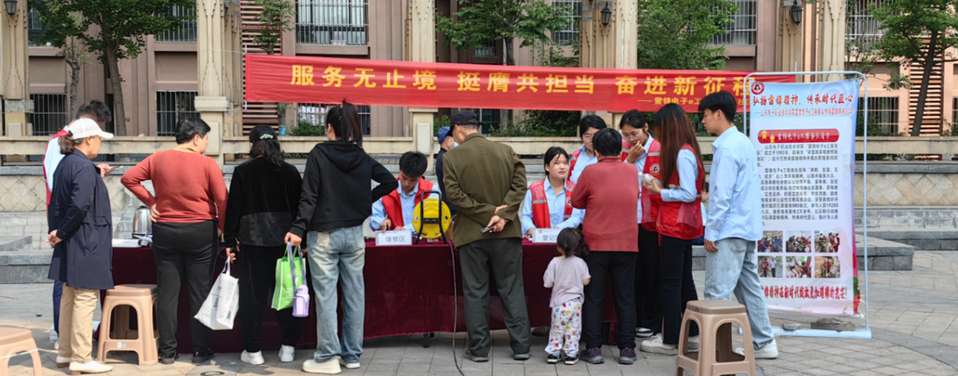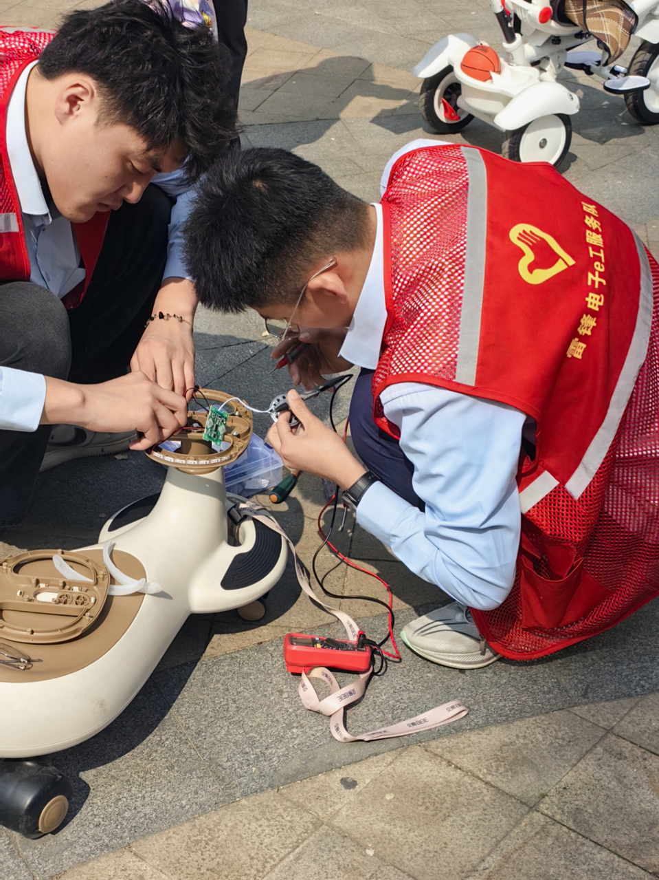 四月春风正当时,雷锋精神共传承。为进一步弘扬与践行雷锋精神,提高同学们服务社会、奉献社会的意识,雷锋电子e工服务队走进盛世国际社区为居民提供免费维修家电、磨刀、手机贴膜等志愿服务。