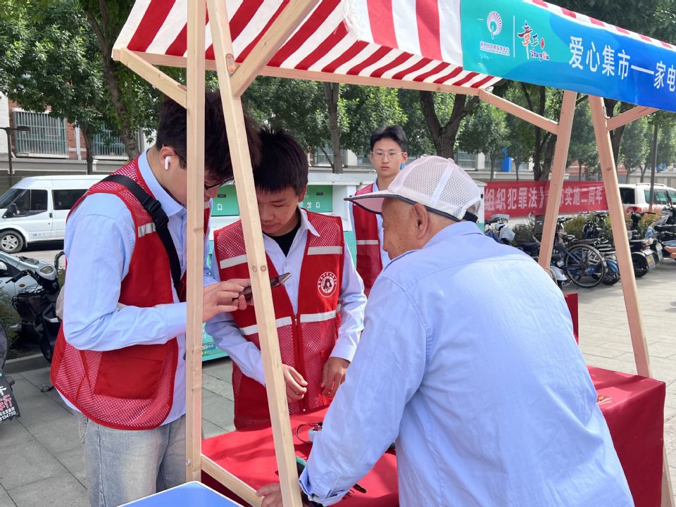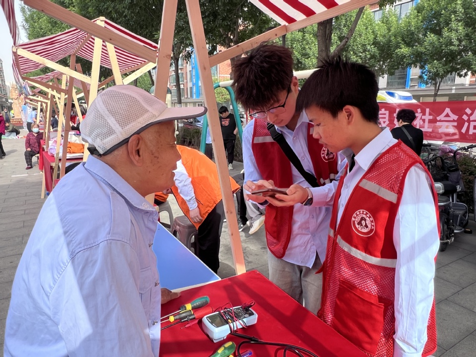 家电维修摊位前聚集了不少前来寻求帮助的居民,不加热的饮水机、总闪退的手机、指针暂停的电子表,大大小小的故障电器很快堆满了整个摊位。志愿者们迅速行动,亲切询问,仔细检查,认真维修,家电维修服务有条不紊的开展。针对居民们的困惑,志愿者们耐心讲解并提醒居民们在日常生活中注意用电安全。在志愿者们的精心修理下一个个小家电被赋予了新的生命,居民们拿着修好的家电喜笑颜开,对志愿者们的精湛技术赞不绝口。