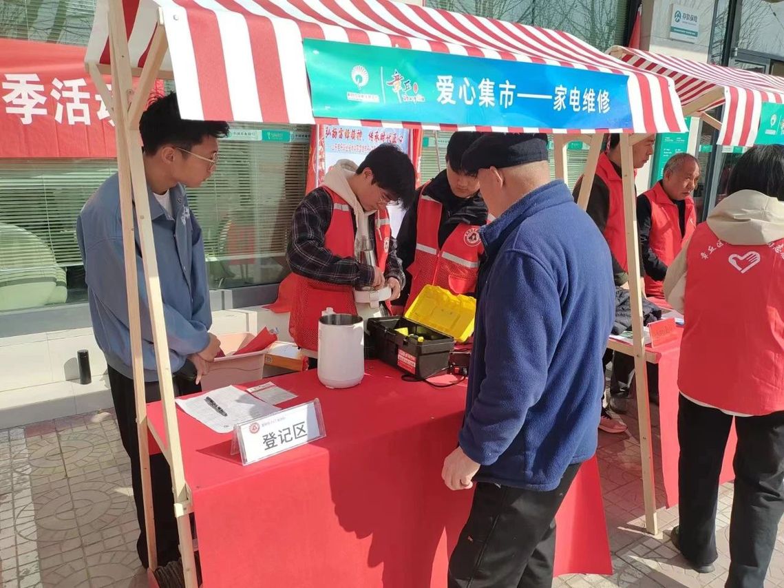 爱心市集现场,吸引了众多居民朋友前来“赶集”,其中“家电维修”摊位成为大家喜欢的“香饽饽”,不一会儿就被前来咨询的居民围满了。青年志愿者们耐心向大家科普家电使用方法及保养常识,提供维修建议,获得居民朋友的一致好评。