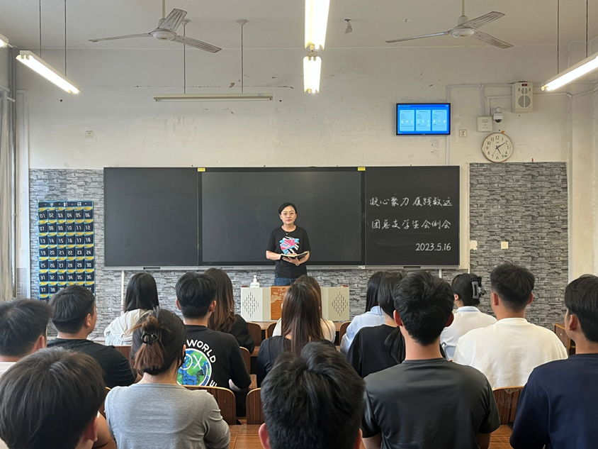 王宁向同学们介绍了院部新的领导班子及各部门指导老师,进一步加强同学与老师之间的交流,使学生工作继续稳步前进。她强调学生干部在工作中要培养真才能,历练真本领,以严格标准约束自己,以实际行动争作表率,只有自讨“苦”吃才能收获甘泉。同时,她希望同学们发挥好传帮带作用,在工作过程中注重培养有能力、有责任心的新鲜血液,激发团学部门新活力、新动力。