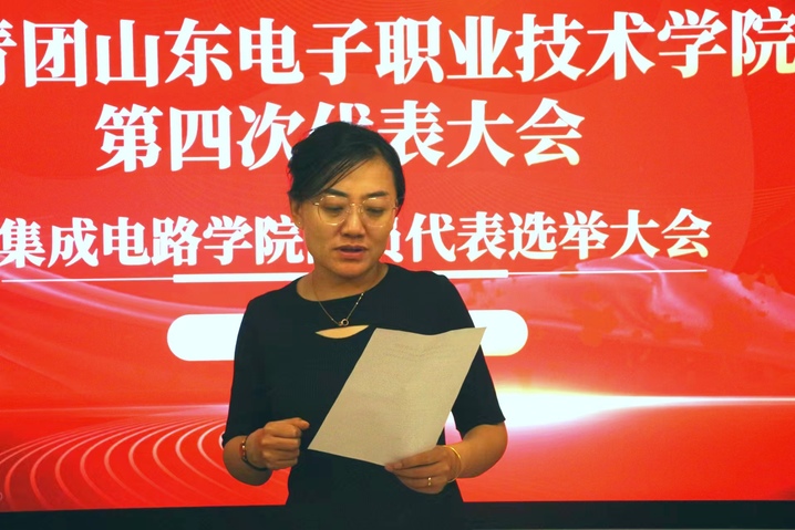 由王宁宣布本次选举结果,现场公布集成电路学院代表团出席共青团山东电子职业技术学院第四次团员代表大会27名代表名单。