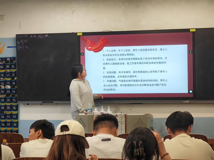 活动开始,各团支部书记点明了青春奋斗的重要性,通过PPT的形式,让同学们对新时代青年的命运有了更深刻的理解。随后各团支部书记开展优秀人物事迹知识抢答活动,让同学们对青春奋斗有了更深刻的理解,进一步激发了同学们的责任感。同学们纷纷表示:“作为新时代青年要勇担大任,要以更加积极的态度去面对学习和生活中的困难,迎难而上,将个人理想融入国家发展之中,以实际行动书写新时代的青春篇章。”