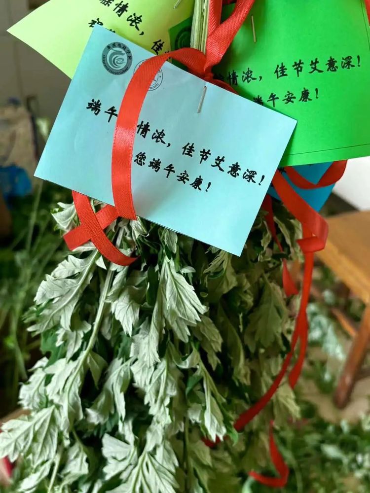 活动最后,每位老师同学都收到了一株艾草和节日祝福。同学们提前采集艾草,细心用红绳捆绑成束。一束束艾草,寄托着美好的期盼和祝愿,也让大家感受到浓浓的节日文化氛围。