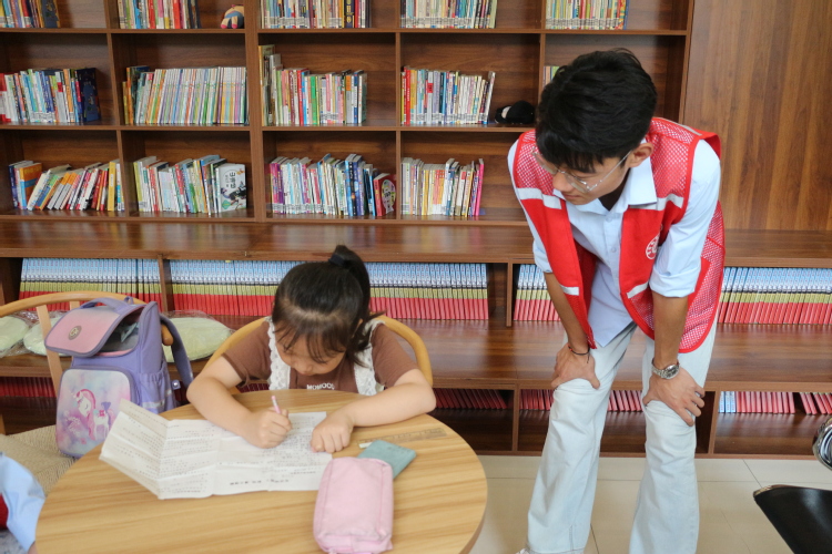 与此同时,另一组志愿者在社区活动室为小朋友们进行学业辅导。他们耐心细致地讲解难题,用生动有趣的方式引导孩子们思考,让学习变得更加轻松愉快。小朋友们积极参与,脸上洋溢着收获知识的喜悦。