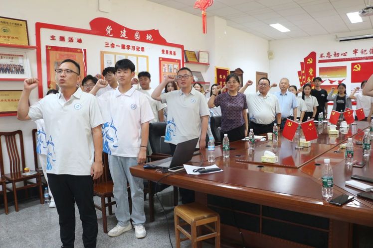 在会议室的党旗前,陈旭带领全体党员重温入党誓词。这一刻,每个人的心中都充满了自豪与神圣,誓言声声,响彻云霄,回荡在整个会议室里。