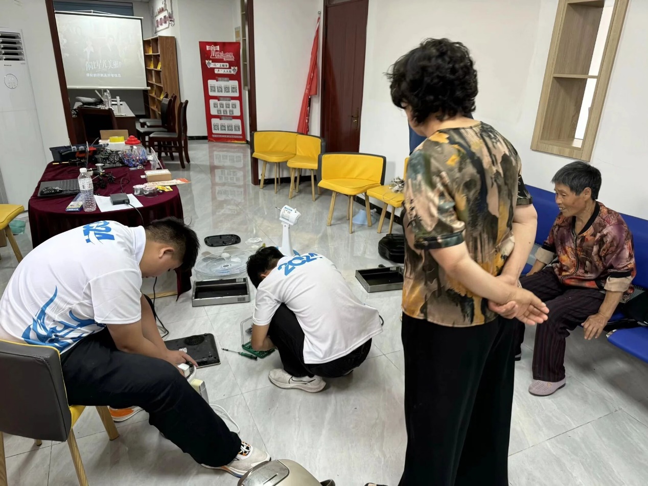 e星火乡村振兴促进团积极响应群众所需,一场别开生面的志愿维修活动在文祖社区村支部委员会如火如荼地展开。电水壶、电饭煲、电磁炉等故障家电接踵而至。队员们耐心钻研,团结协作,仔细排查故障原因,检修工作有序进行。面对村民们的众多困惑,队员们耐心讲解并向他们普及家电日常维修与保养等小知识,提醒他们在使用电器时的注意事项,确保家电能够安全、高效地运行。