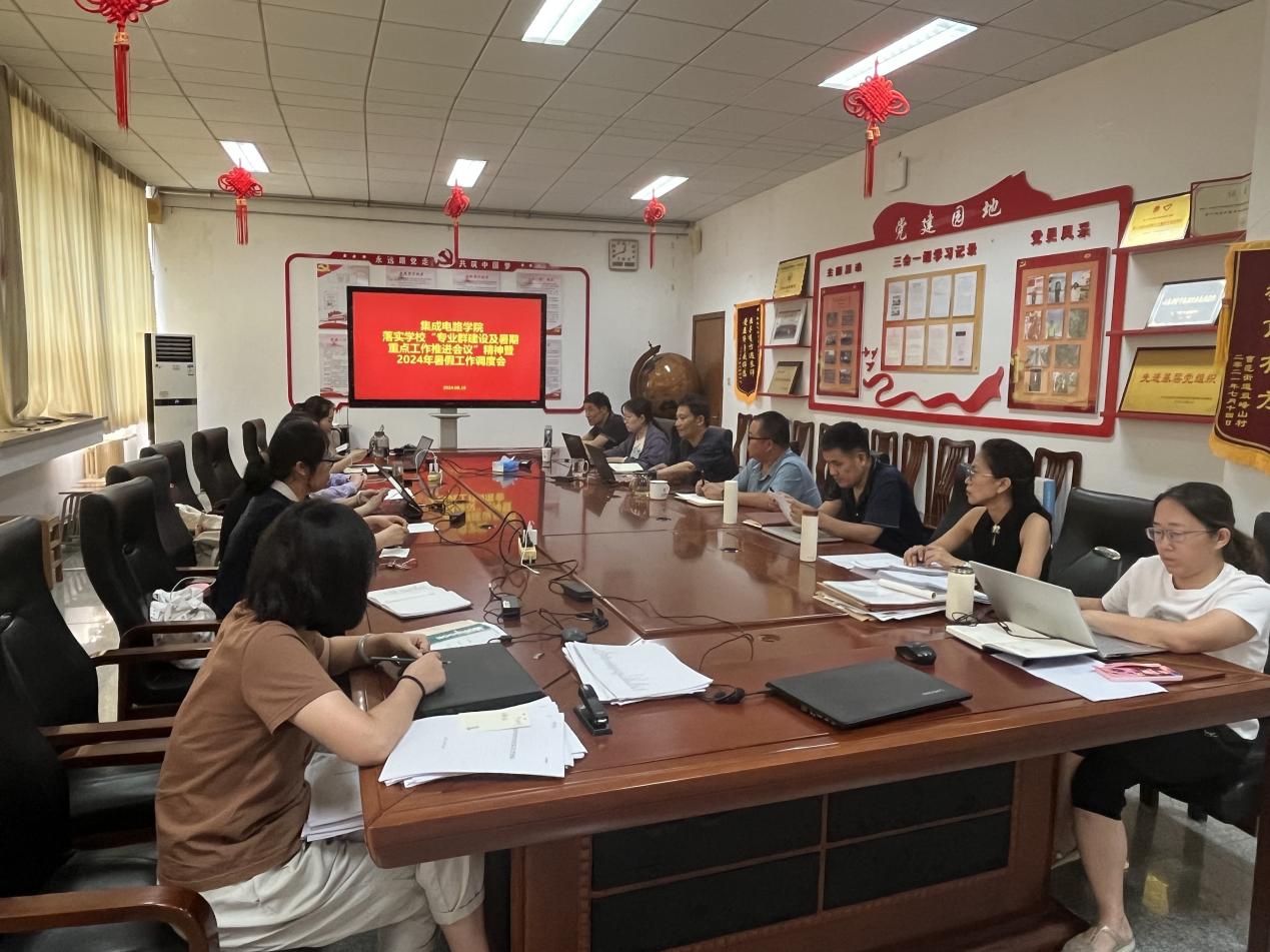 8月15日,集成电路学院召开落实学校“专业群建设和暑期教科研重点工作推进会议”精神暨2024年暑期工作调度会,旨在落实学校“专业群建设和暑期教科研重点工作推进会议”精神,推进暑期重点工作实施。院长郭隆健、副院长孟建明、学院干部、专业负责人、辅导员及部分教师参加会议。