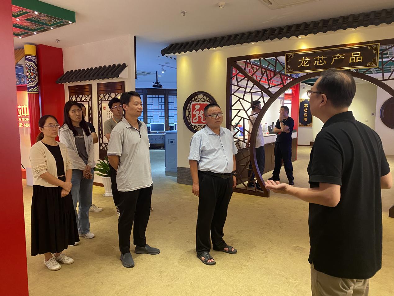 在龙芯中科,郭隆健一行参观了龙芯中科展示区。龙芯中科总裁助理王松宇介绍了企业发展历史以及在信创领域取得的成绩。郭隆健介绍了集成电路学院基本情况及集成电路专业群的建设情况。校企双方在信创引领的集成电路人才培养、集成电路实训室建设、集成电路教学资源开发等方面进行了深度沟通交流,并初步达成合作意向。
