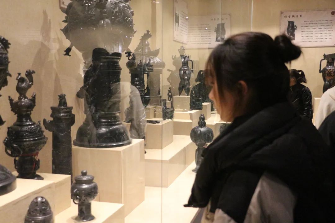 活动伊始,博物馆的工作人员热情接待了学校各位老师和同学们,并耐心地向他们讲述了博物馆悠久的创建历史、展品的独特韵味及其背后深厚的文化内涵。随后,工作人员带领同学们逐一参观各个展厅。通过近距离观赏实物、聆听讲解员的生动讲解以及阅读丰富的展览资料,同学们对龙山地区的历史脉络、文化特色及发展变迁有了深入地了解。参观途中,学生骨干们不时停下脚步,相互交流心得,分享各自对文物的独特感悟与深刻思考。