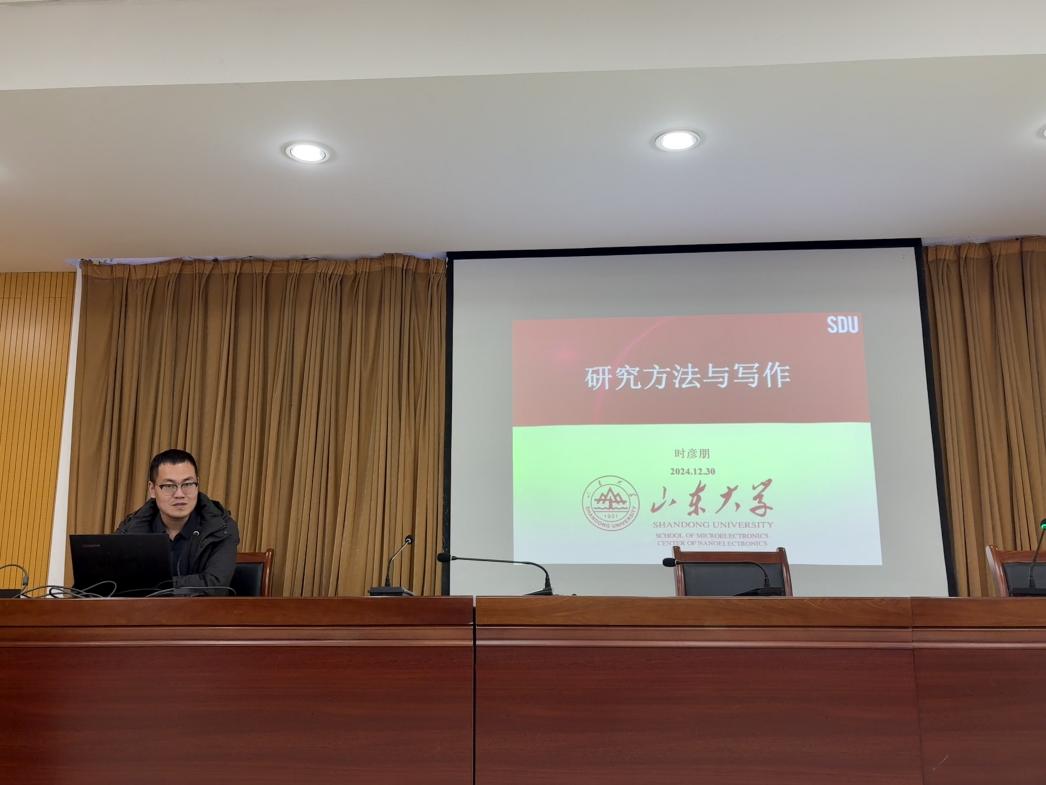 会上,山东大学集成电路学院副教授时彦朋作为特邀嘉宾,为大家带来了题为“研究方法与写作”的专题分享。他从科研总体框架、高水平论文期刊的选择与投稿流程,以及研究思路、方法和选题的确定等多个角度,深入剖析了撰写高质量论文的关键要素。