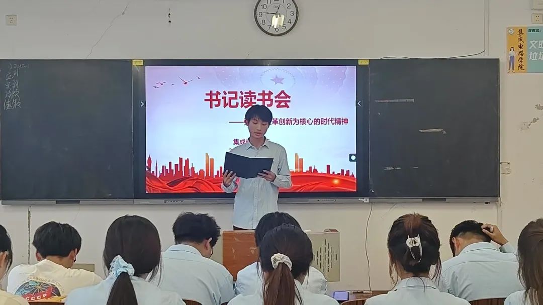 5月29日,集成电路学院组织开展“弘扬以改革创新为核心的时代精神”主题书记读书会,24级全体团支书参与。旨在引导青年紧跟时代步伐,以改革创新之姿奋进新征程。