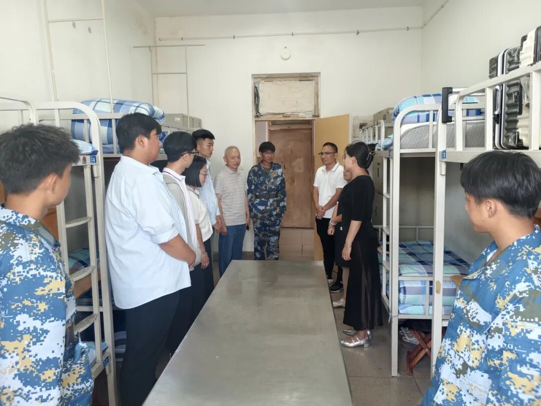 此次检查重点围绕宿舍卫生、安全隐患、学生生活状态等方面展开。李文革、王宁和辅导员们逐层走访学生宿舍,亲切慰问刚刚入学的新生,细致询问他们的生活适应情况、入学感受以及日常需求,并耐心解答同学们提出的问题。走访过程中,老师们还特别叮嘱新生注意人身与财产安全,鼓励大家尽快融入集体生活,建立和谐的宿舍氛围。李文革强调,宿舍是学生生活的重要场所,保持良好的环境不仅有助于身心健康,也是校园文明建设的重要组成部分。他嘱咐同学们要增强安全意识,杜绝违规用电行为,共同维护宿舍安全。