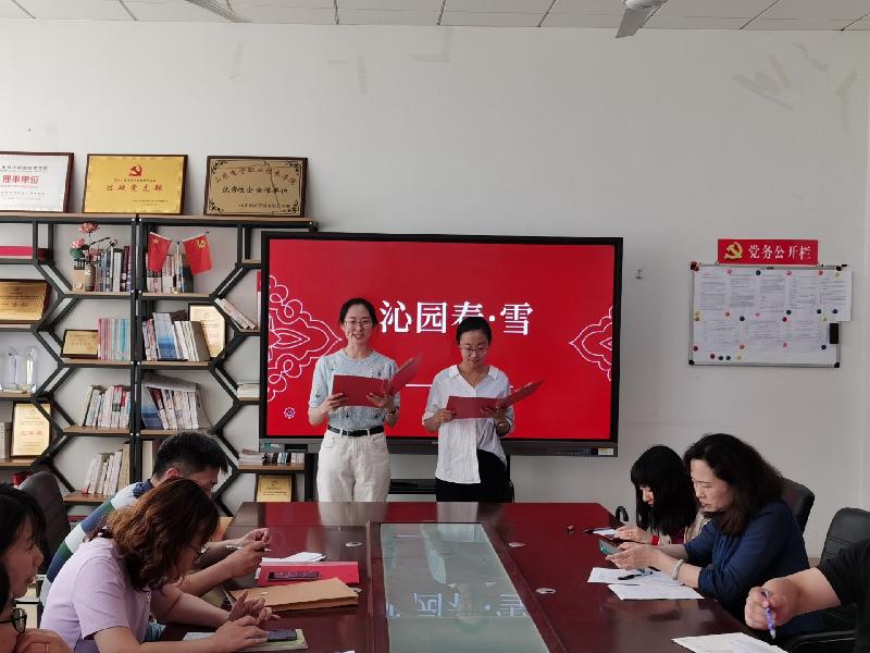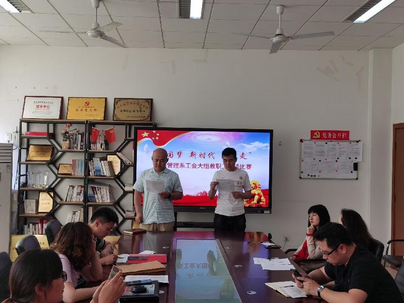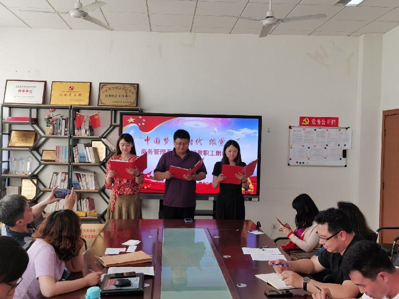 为庆祝中国共产党成立100周年,向党的百年华诞献礼,回顾党的光辉历程,讴歌党的丰功伟绩,进一步引导广大教职工热爱党、拥护党,听党话、跟党走, 2021年6月1日,商务管理系在综合楼408党员活动室组织开展“中国梦•新时代•跟党走”教职工朗诵比赛活动。