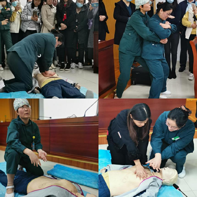 随后,老师们跃跃欲试,对新学到的急救措施与医护人员展开互动,模拟真实的施救现场,病情判断、呼救病人、开通气道、心脏按压、人工呼吸,规范流畅地完成整个施救过程。