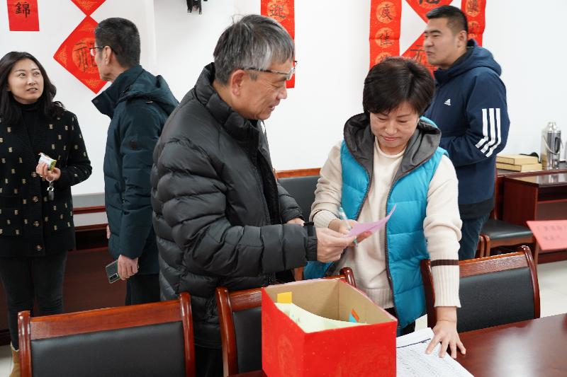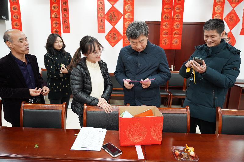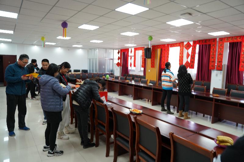 12月30日下午,行政大组办公楼222会议室,布置猜灯谜现场,全场共有243个灯迷共大家随机抽取回答,借此弘扬我国民族文化,以语言平实精炼、雅俗共赏、饱含哲理的灯谜,为即将到来的元旦增添节日气氛。现场还同步展出了老师们的春联和福字作品,老师们互相欣赏、点评,现场气氛和乐融融。(行政大组 郑清一)