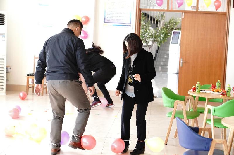 本次活动共设置三个游戏。听歌识曲,由6-7名老师参加,通过播放的音乐片段说出正确的歌曲名称。该游戏充分展示了老师们对于歌曲的熟悉程度。老师们通过踩气球游戏,释放了工作压力;抢凳子作为经典游戏,深受老师们的喜爱。